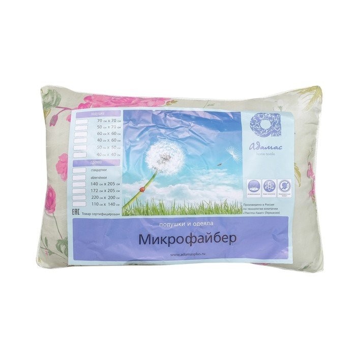 Подушка Адамас синтетическая, размер 40×60 см, холлофайбер, чехол МИКС