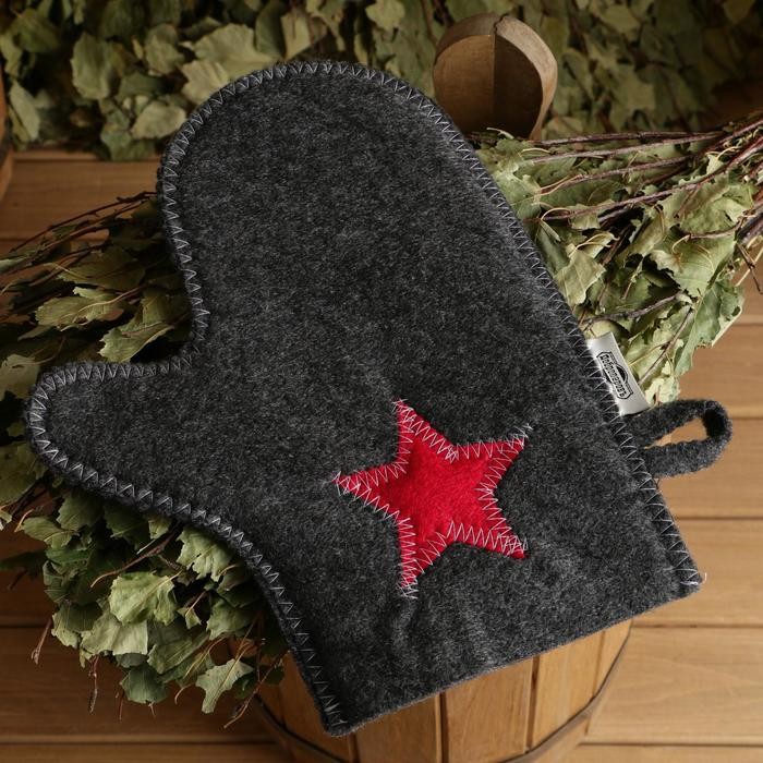 Набор для бани «Буденовец» серый: шапка, коврик, рукавица