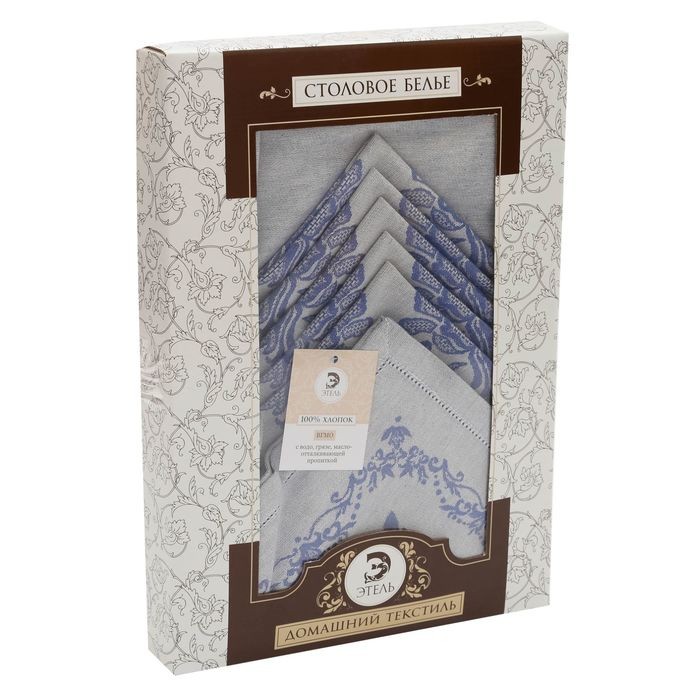 Столовый набор «Этель» (скатерть 150×300 см, салфетки 45×45 см — 12 шт.) цвет синий, хл. с ВМГО