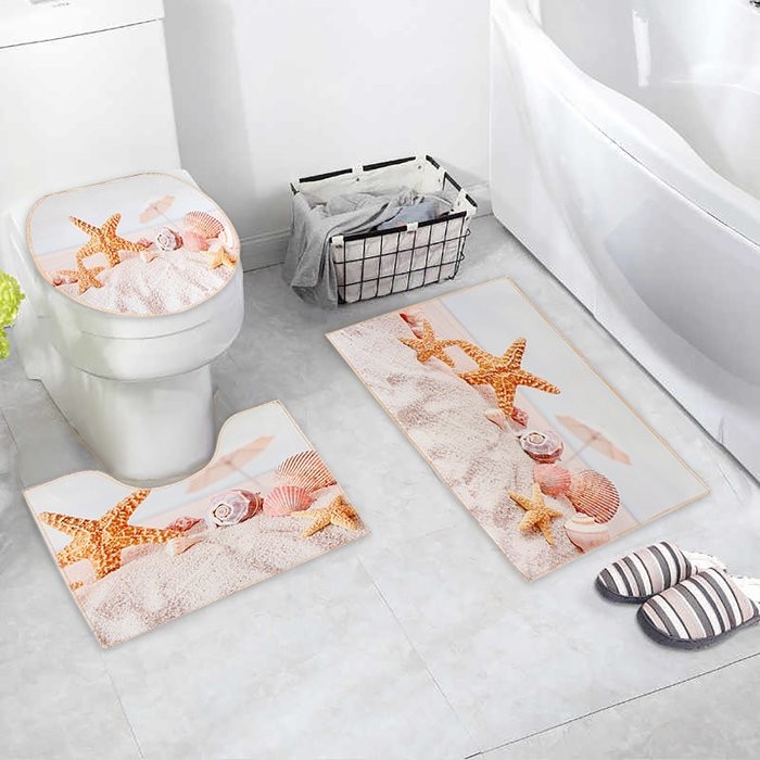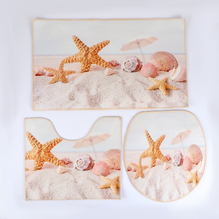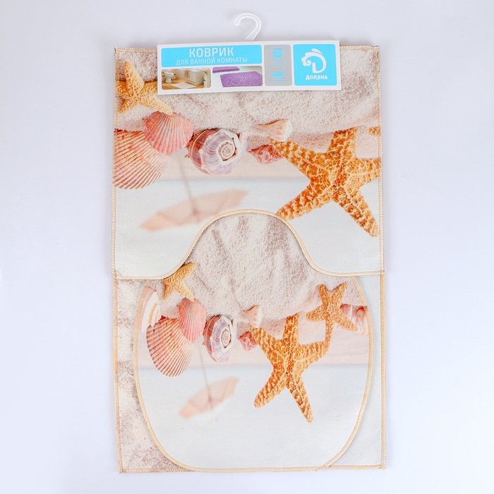Набор ковриков для ванны и туалета Доляна «Ракушки», 3 шт: 38×46, 40×45, 45×75 см
