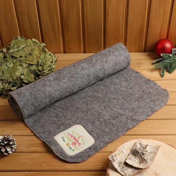 Банный коврик-лежак из войлока с оригинальной вышивкой отлично впитывает влагу и защищает тело от жара полок. Аксессуар выполняет также и гигиеническую функцию, что немаловажно при походах в общественные заведения. Лежак пригодится поклонникам классической русской бани и тем, кто предпочитает сухой жар финской сауны.