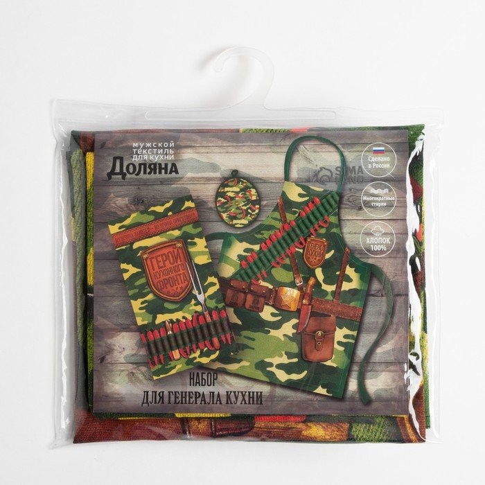 Кухонный набор «Генерал кухни», фартук 60×70 см, прихватка 20×20 см, полотенце 35×60 см