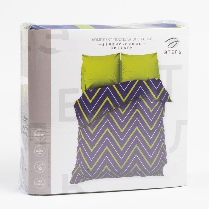 Постельное бельё Этель 2 сп «Зелёно-синие зигзаги» 175×215, 200×220, 70×70−2 шт