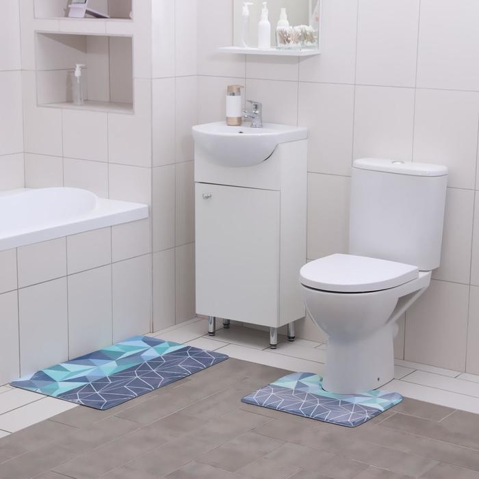 Набор ковриков для ванны и туалета Доляна «Геометрия цветов», 2 шт: 40×45, 45×75 см