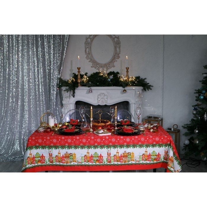 Скатерть Доляна «Новый год: Волшебный город» 180×149 см, 100% хлопок, 164 г/м2