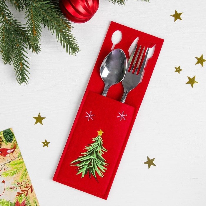 Конверт сделан из фетра и имеет праздничный дизайн.