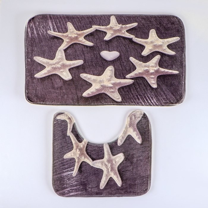 Набор ковриков для ванны и туалета Доляна «Звёзды», 2 шт: 40×50, 50×80 см