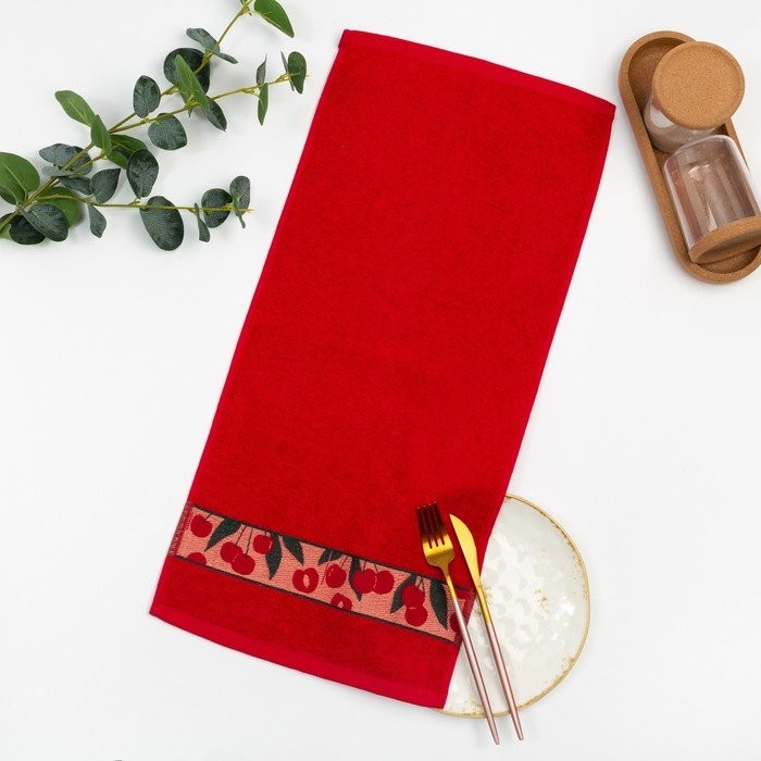 Полотенце махровое жаккардовое 30×60 см, вишня, хлопок 100%, 340 г/м2