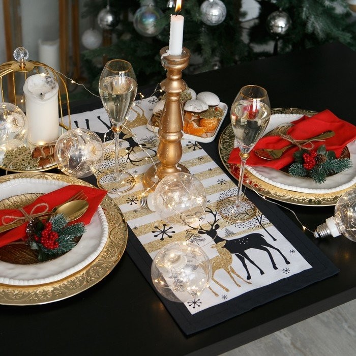 Дорожка на стол «Этель: Олени», 30 × 70 см, 100% хлопок, саржа, 190 г/м²