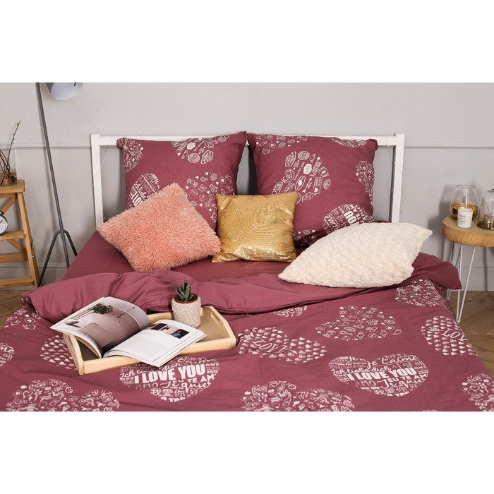 Постельное бельё «Этель» 2 сп Te amo (вид 2) 175×215 см, 200×220 см, 70×70 — 2 шт, бязь