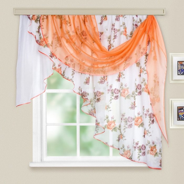 Комплект штор для кухни «Иллюзия», 300×150 см, цвет персиковый, принт микс