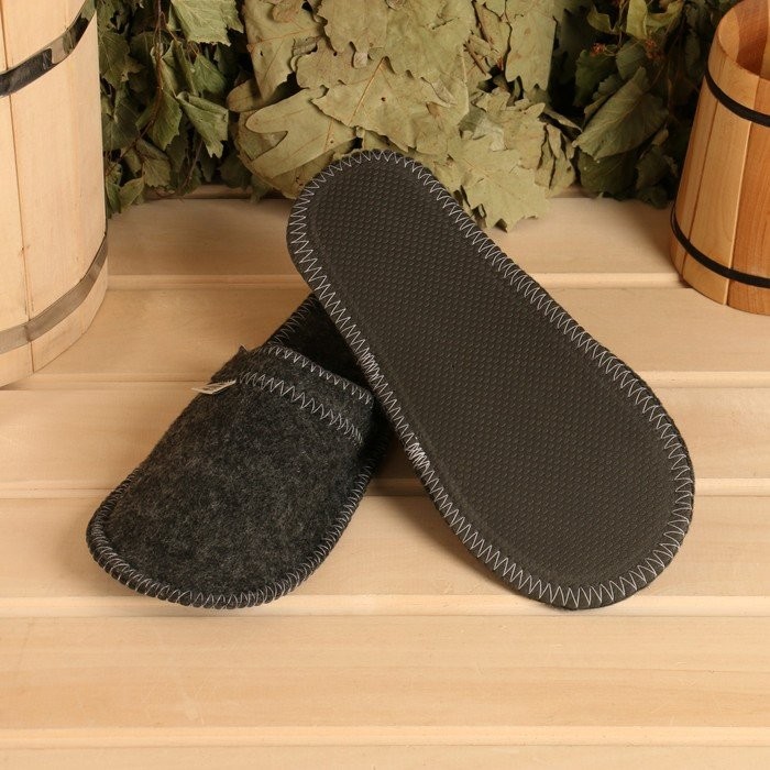 Тапочки для бани с непромокаемой, нескользящей подошвой, серые, войлок