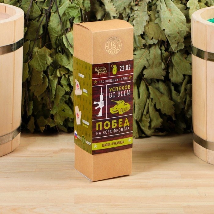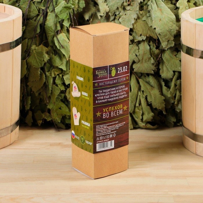 Набор для бани «Герою и защитнику!» шапка, рукавица
