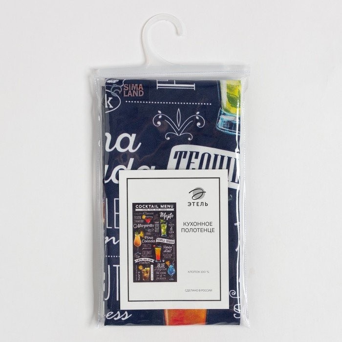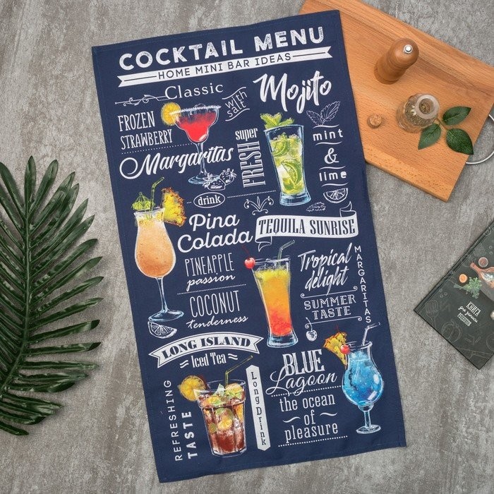 Полотенце «Этель» Cocktail menu 40×73 см, 100% хл, саржа 190 гр/м2