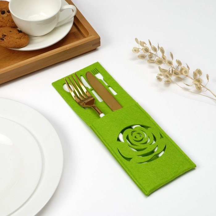 Конверт для столовых приборов Доляна «Роза» цвет зелёный, 9×25 см