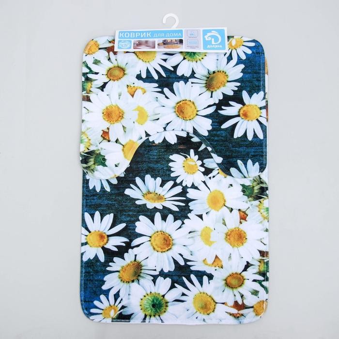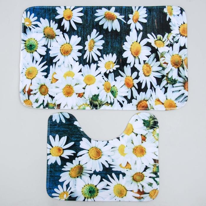 Набор ковриков для ванны и туалета Доляна «Ромашковое поле», 2 шт: 40×50, 50×80 см