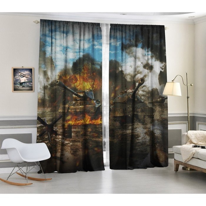 Комплект штор Военные действия, 147×267 +/- 3см 2шт, габардин, п/э100%