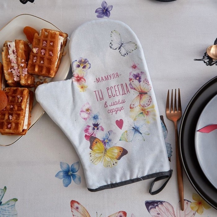 Варежка-прихватка «Мамуля» 20х28см, саржа, 100% х/л, ватин 250г/м2
