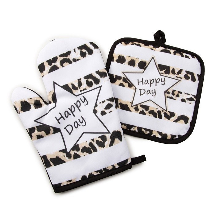 Кухонный набор (2 предмета) Этель LoveLife Happy, прихватка 17×17 см, рукавичка 26×16 см, 100% п/э