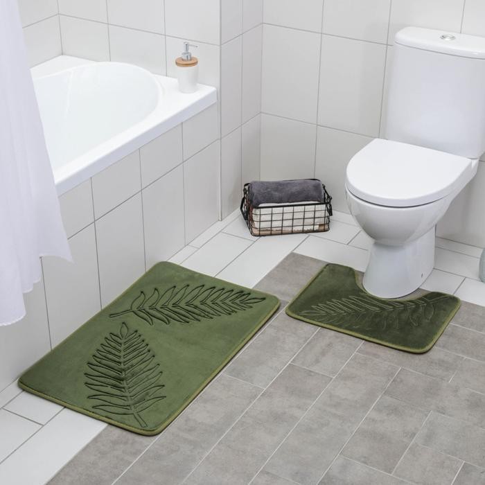 Набор ковриков для ванны и туалета Доляна «Тропики», 2 шт: 40×50, 50×80 см, цвет хаки