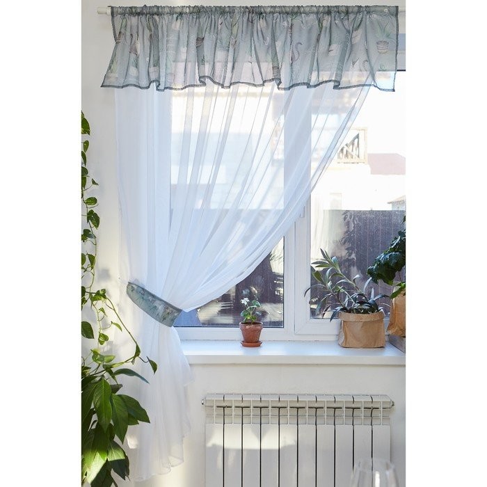 Тюль с подхватом и ламбрекеном «Садовая романтика» 250х200см, 100% п/э, вуаль