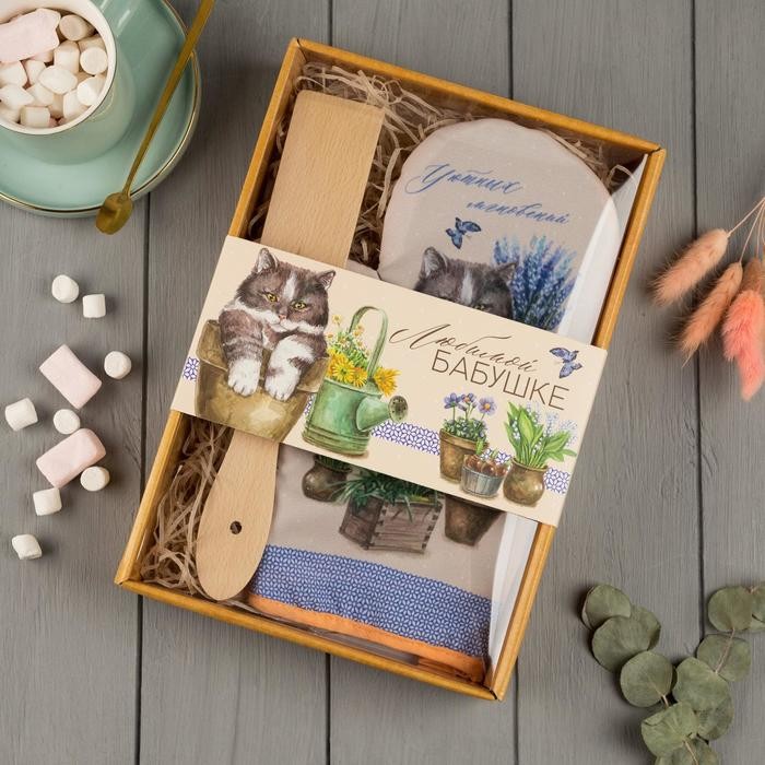 Кух.набор «Любимой бабушке»,варежка-прихватка 20х28см, лопатка деревян.