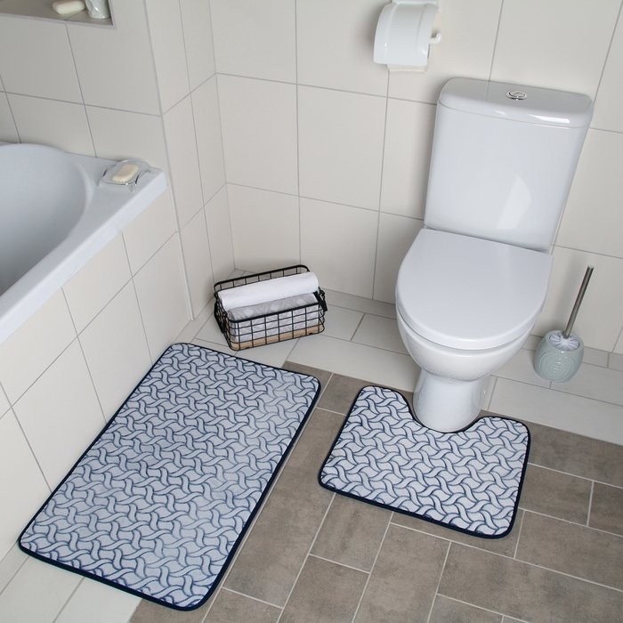 Набор ковриков для ванны и туалета Доляна «Винель», 2 шт: 40×50, 50×80 см, цвет синий
