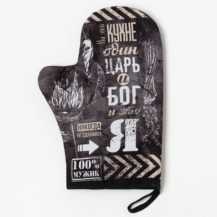 Кухонныйнабор «Царь на кухне», варежка-прихватка 20х28см, молоток деревян.