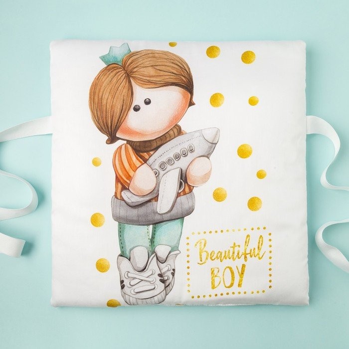 Бортики в кроватку Крошка Я «Принц Тим», цвет белый, 35×35 см-8 шт, сатин