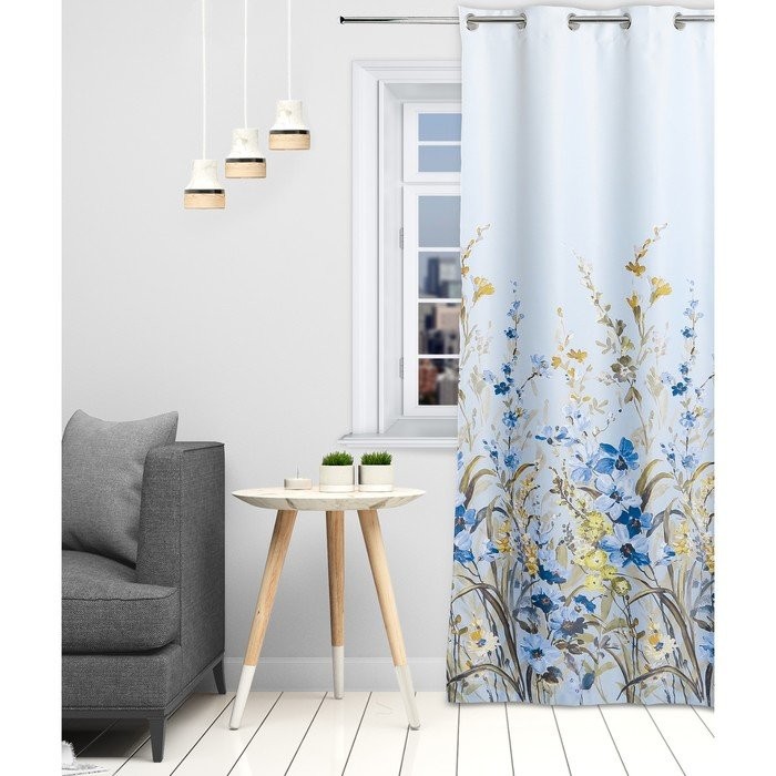 Штора портьерная Этель «Акварель» цв.синий, 145*250 см, на люверсах, пл. 210 г/м2, 100 п/э