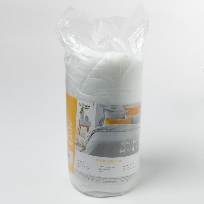 Одеяло Спанбонд 140×205 см, белый, синтепон 100г/м2, ткань спанбонд 40г/м2