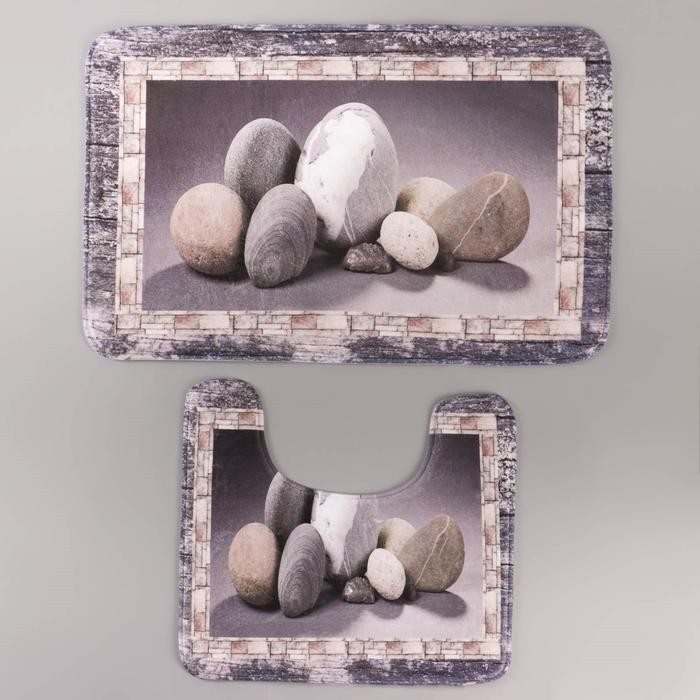 Набор ковриков для ванны и туалета Доляна «Камушки», 2 шт: 45×70, 39×45 см