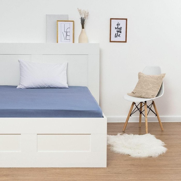 Трикотажная простынь на резинке 140х200х25см, голубой кулирка