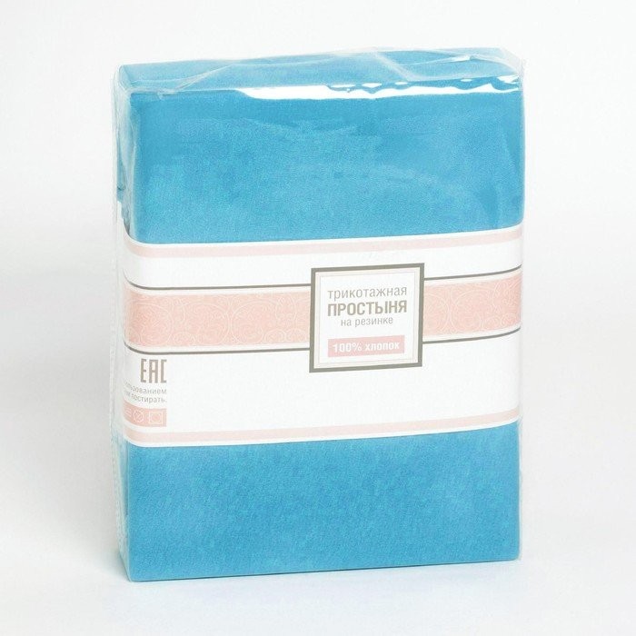 Простыня на резинке трикотажная, размер 180х200х25см, цвет бирюза, кулирка 120г/м², 100% хлопок