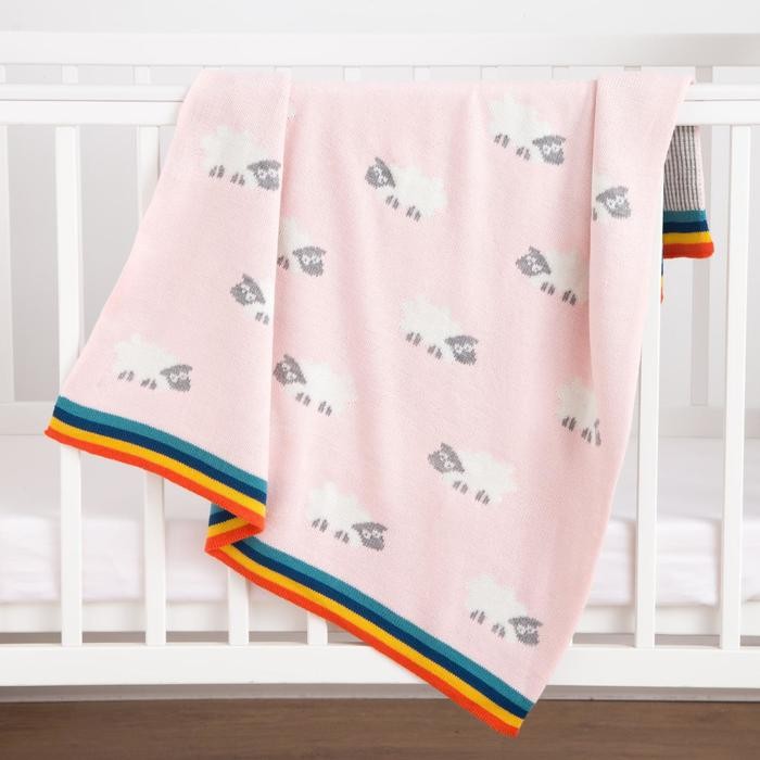 Плед вязаный Крошка Я «Овечки» цв. розовый, 80*100 см, 100% хлопок