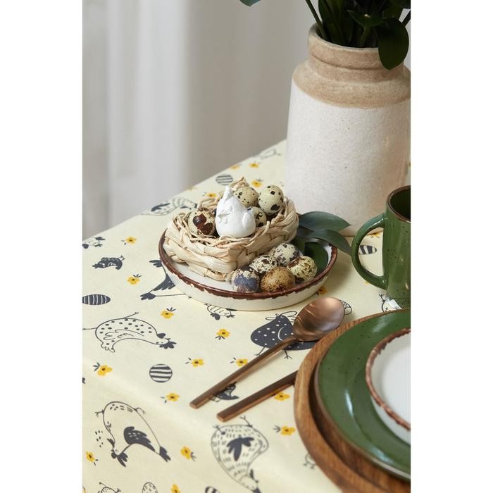 Скатерть пасхальная, Доляна Сhicken farm 180×144 см, 100% хлопок, 164 г/м2