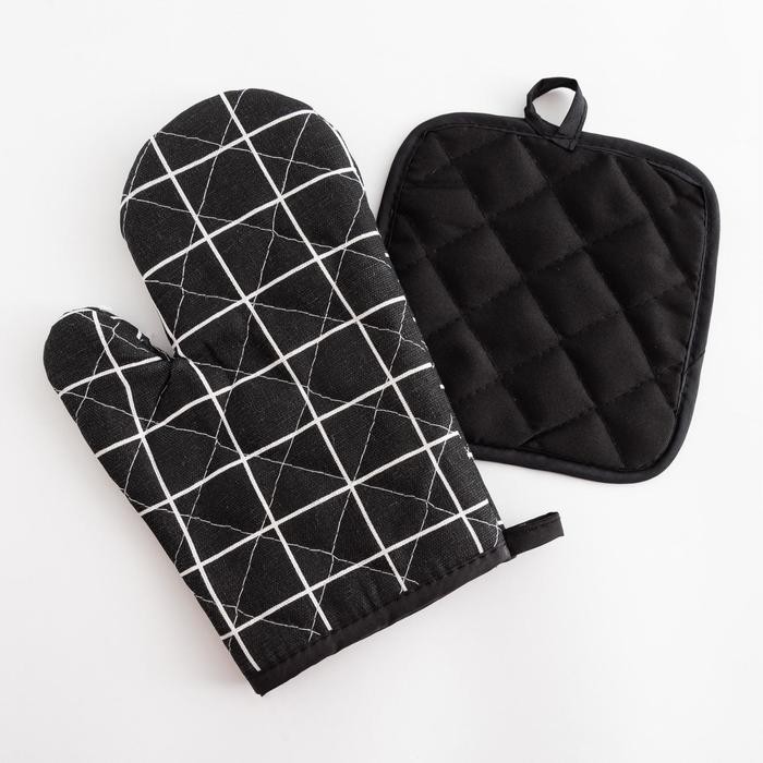 Кухонный набор Доляна «Клетка» цв.черный, прихватка 17*17 см, рукавица 26*16 см,100% п/э