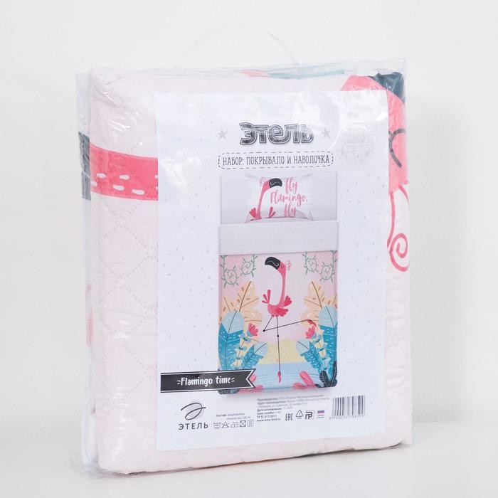 Покрывало детское и наволочка Этель 1,5 сп «Flamingo time», 145×210 см, 40×60 см, микрофибра