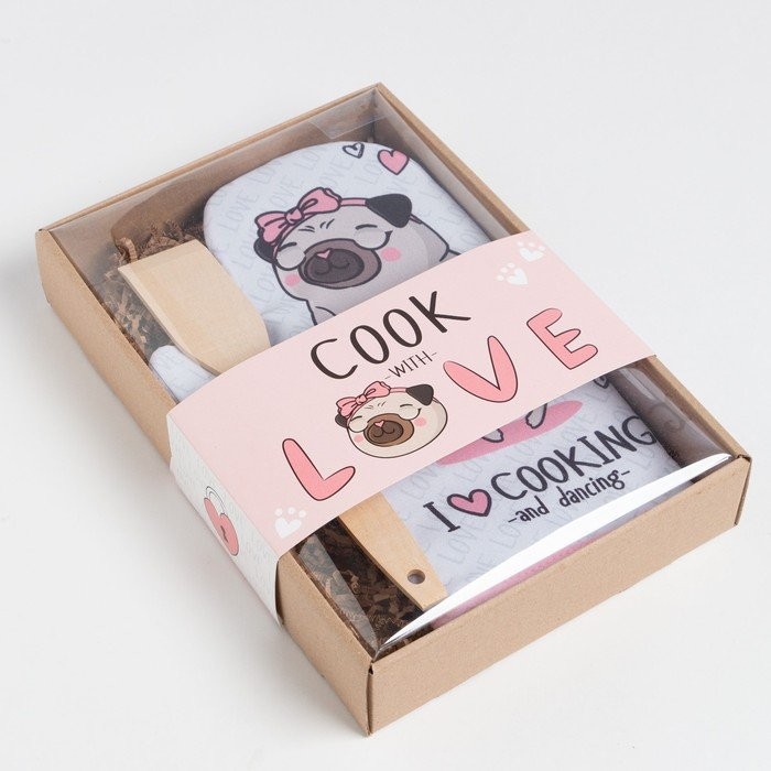 Кухонный набор Cook with love, варежка-прихватка 20х28см, лопатка деревянная