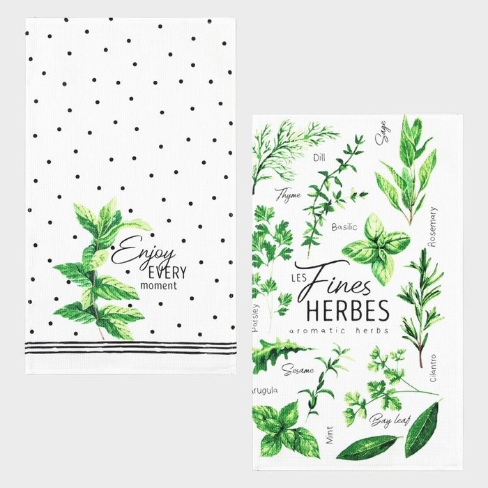 Набор кухонных полотенец Доляна Fines herbes, 35х60см-2шт, 100% хл