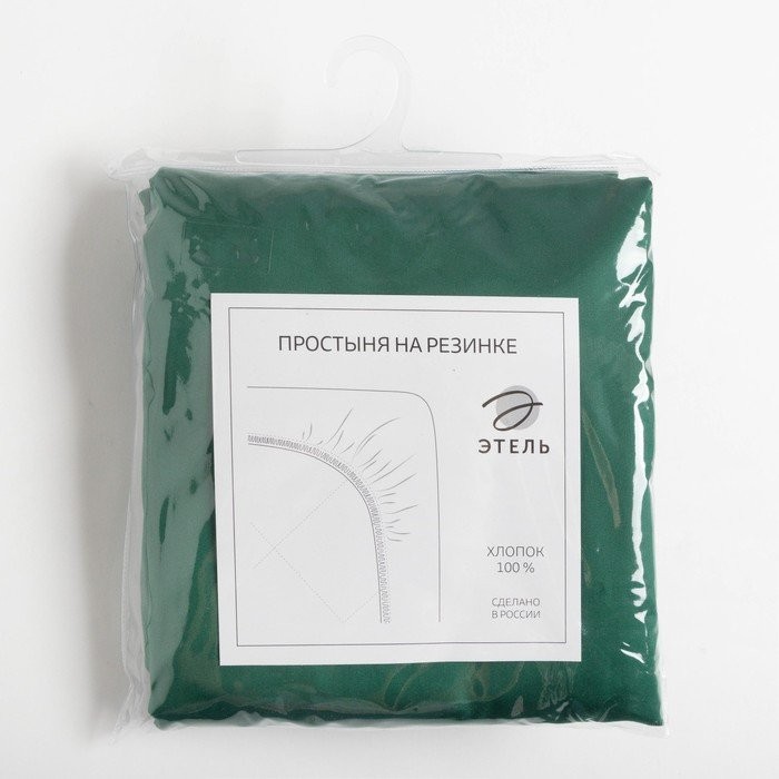 Простыня на резинке Этель 160*200*25 см, цв.изумрудный, 100% хлопок, мако-сатин, 125 г/м²
