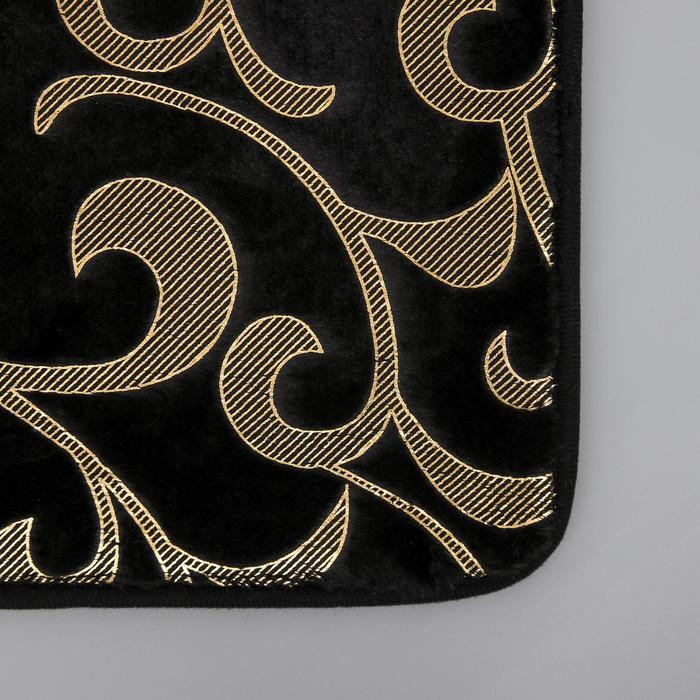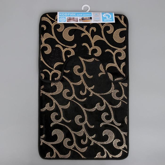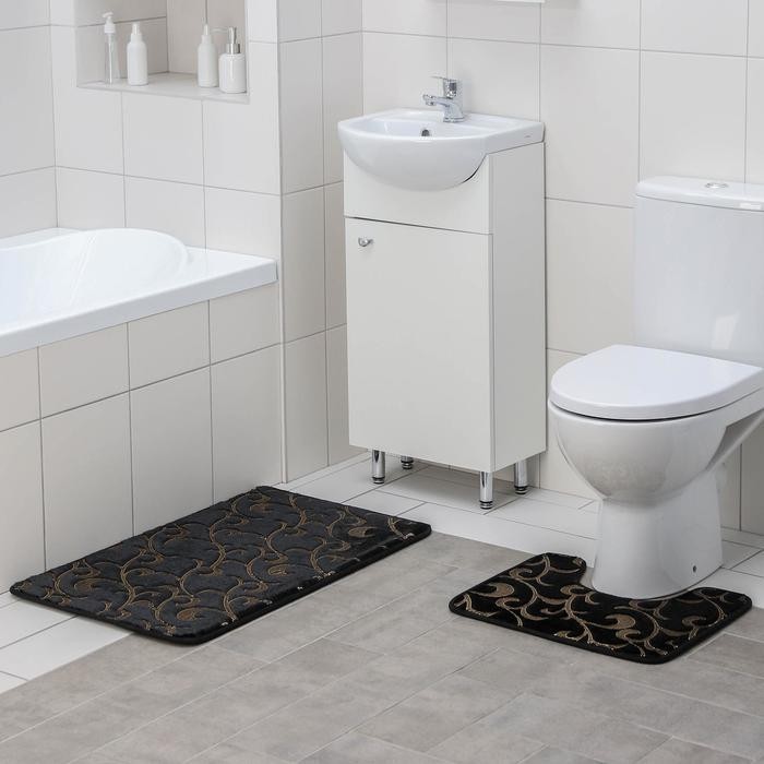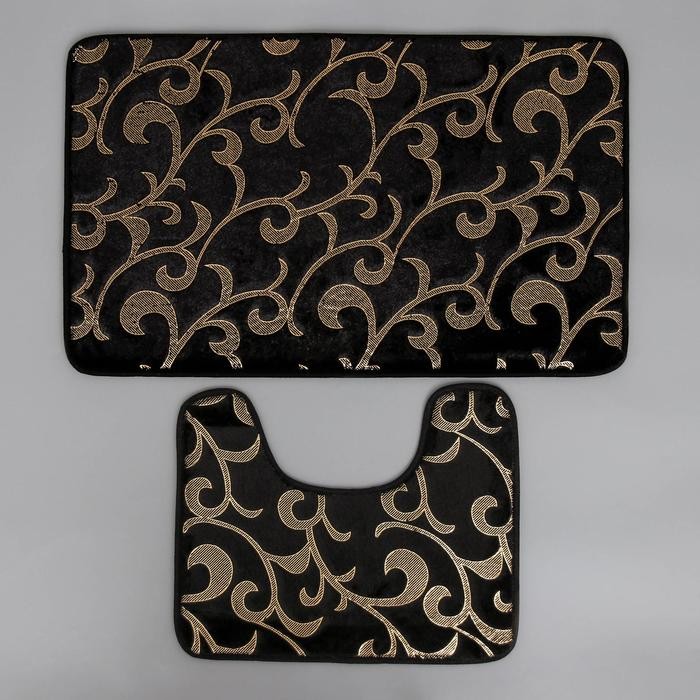 Набор ковриков для ванны и туалета Доляна «Вензель», 2 шт: 40×50, 50×80 см, цвет чёрный