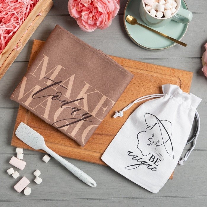 В набор входит кухонное полотенце 40 × 73 см и силиконовая лопатка.